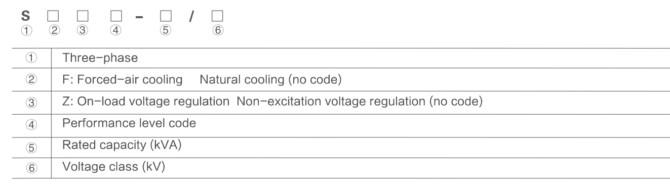 | Model | Rated Capacity (kVA) | Vector Group | Voltage Combination (kV) | No-Load Loss (W) | Load Loss (W) | No-Load Current (%) | Impedance (%) | ||